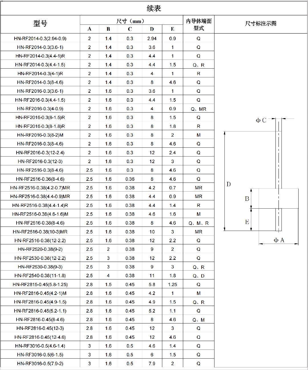 產(chǎn)品型號(hào):HN-RF1914-0.3(3.2-1.1)R