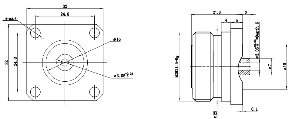 替代型號(hào):L29/ Din / 7/16母頭法蘭安裝射頻同軸連接器 DC-3GHz 阻抗:50Ω 駐波比≤1.15