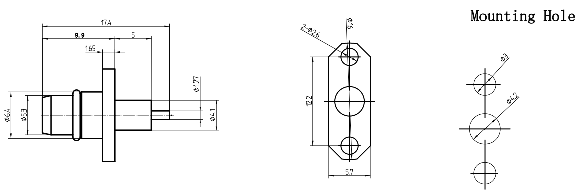 替代型號:BMA公頭2孔法蘭安裝不銹鋼連接 DC-18GHz 阻抗:50Ω 駐波比≤1.25