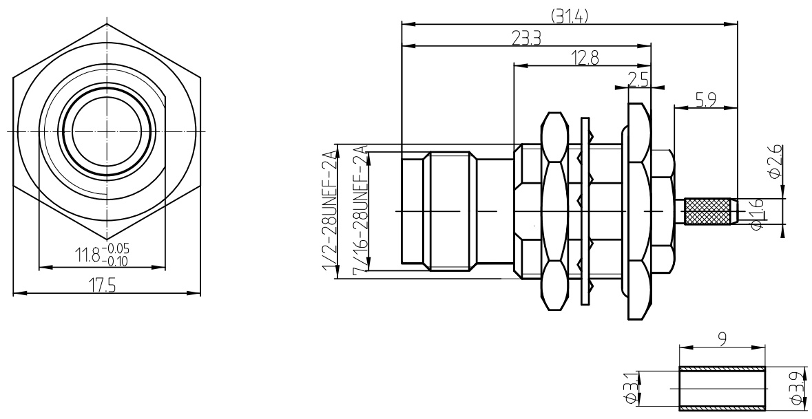 替代型號:TNC母頭穿墻安裝壓接RG316電纜連接器 DC-3GHz 阻抗:50Ω