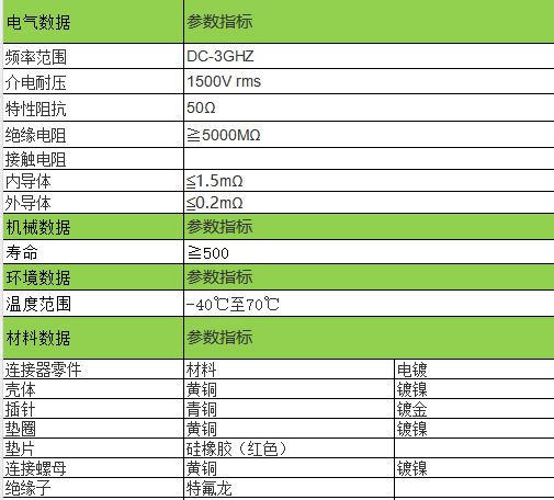 航空航天、雷達(dá)應(yīng)用及各種無線電儀器。接口配合尺寸和技術(shù)特性符合MIL-C-39012、IEC60169-17和CECC22200標(biāo)準(zhǔn)。