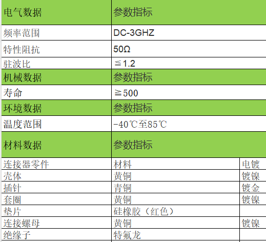 接口配合尺寸和技術(shù)特點(diǎn)符合MIL-C-39012、IEC60169-17和CECC22200標(biāo)準(zhǔn)。