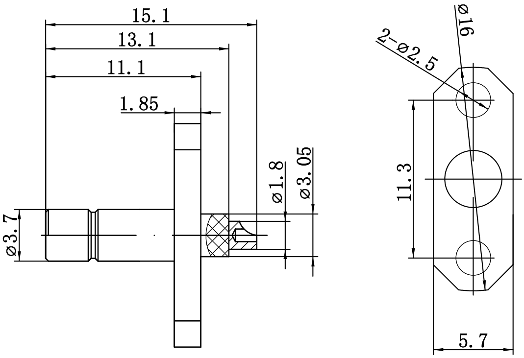 替代型號:SMB公頭法蘭安裝射頻連接器 DC-4GHz 阻抗:50Ω