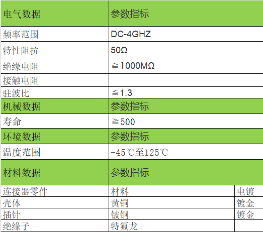 替代型號(hào):SMB母頭射頻連接器裝接RG316線纜 DC-4GHz 阻抗:50Ω