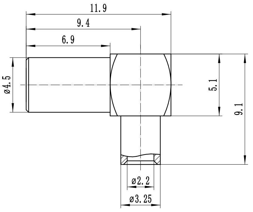 替代型號(hào):SSMB母頭彎式射頻連接器接RG405電纜 DC-4GHz 阻抗:50Ω