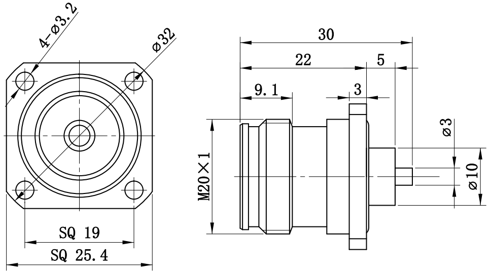 產品描述:4.3-10母頭法蘭安裝射頻連接器 DC-3GHz 阻抗:50Ω